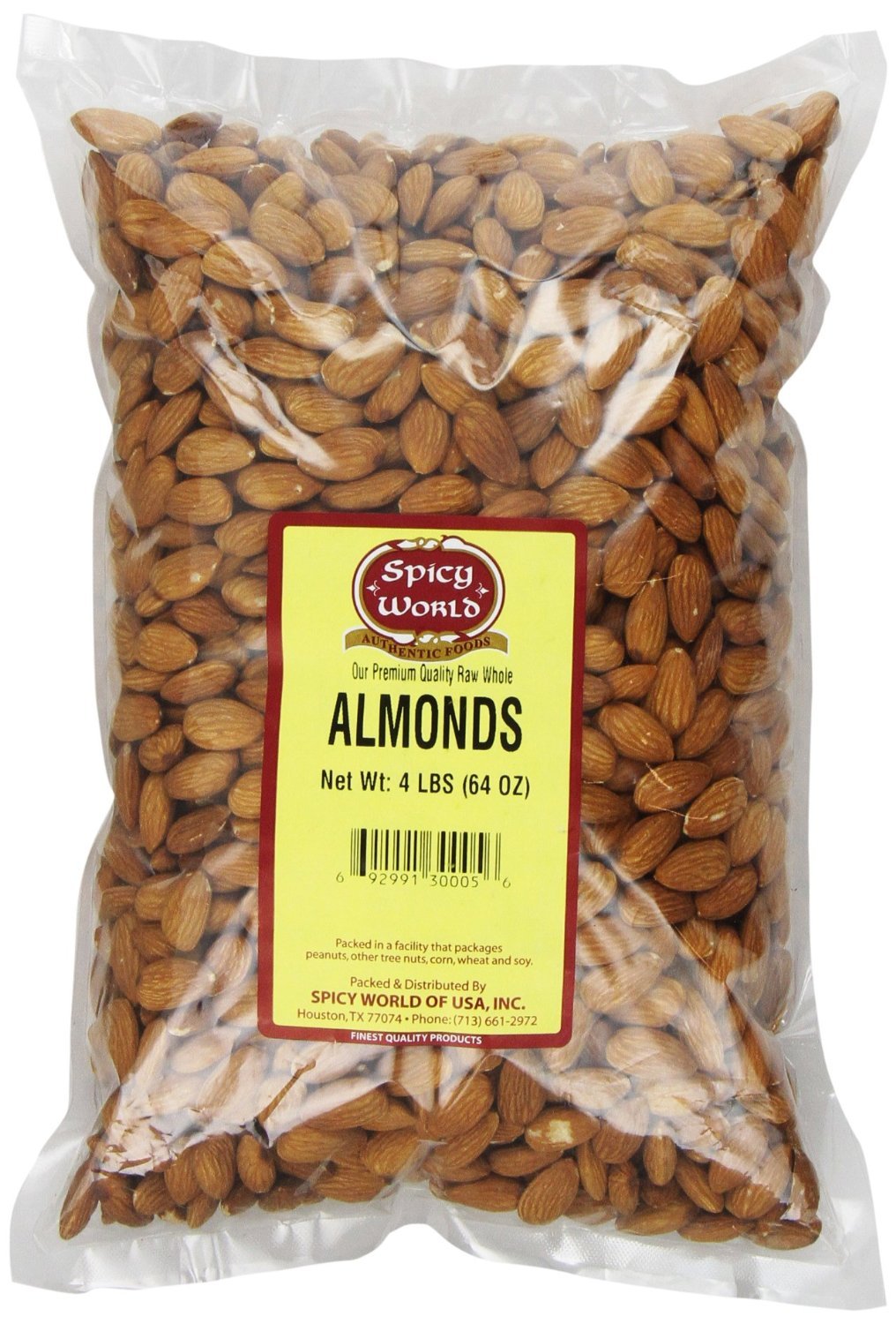 Get Spicy World Almonds Whole (Natural and Raw), 4 Pound